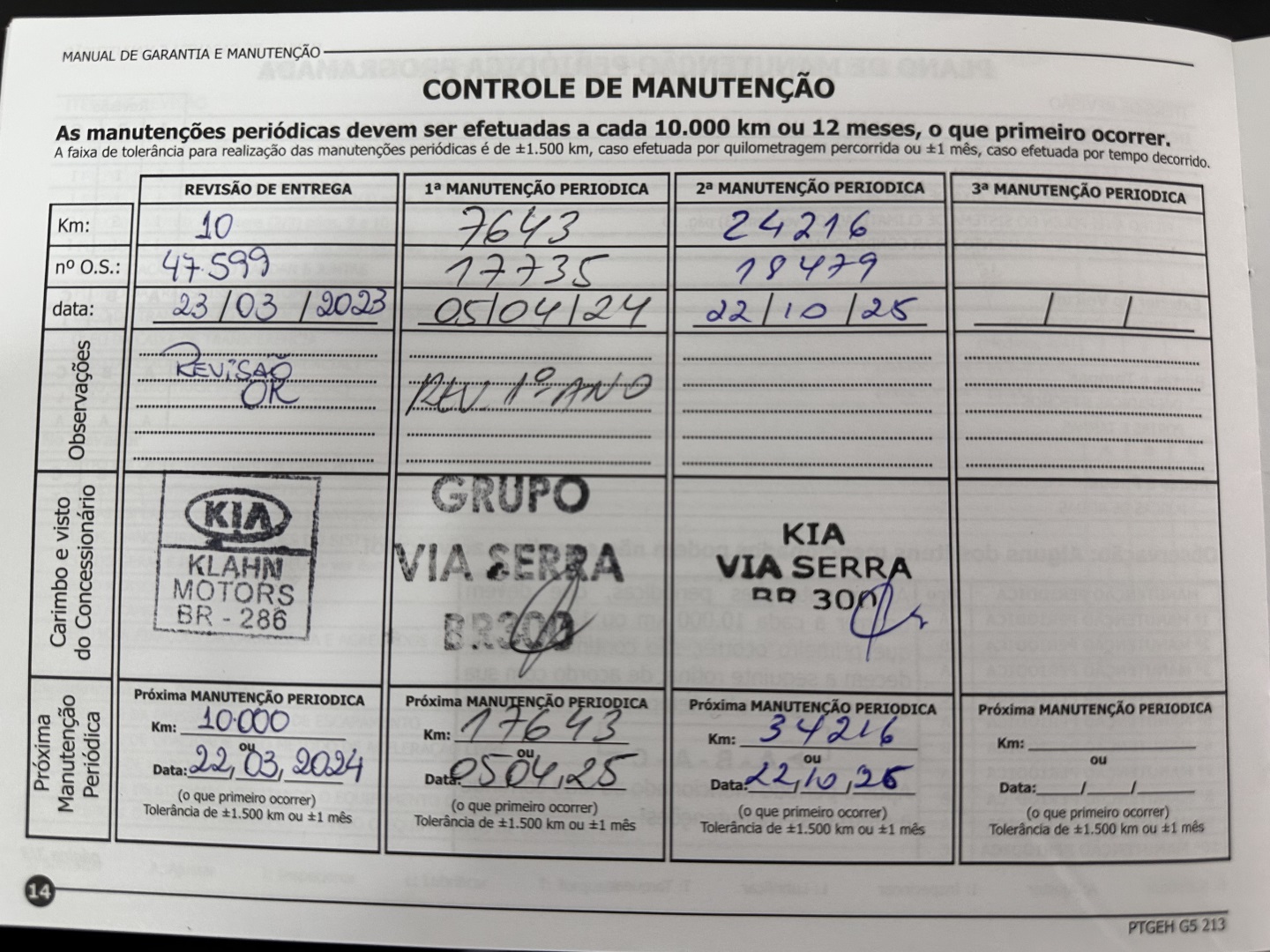 Revisao feita na Kia em 22/10/25